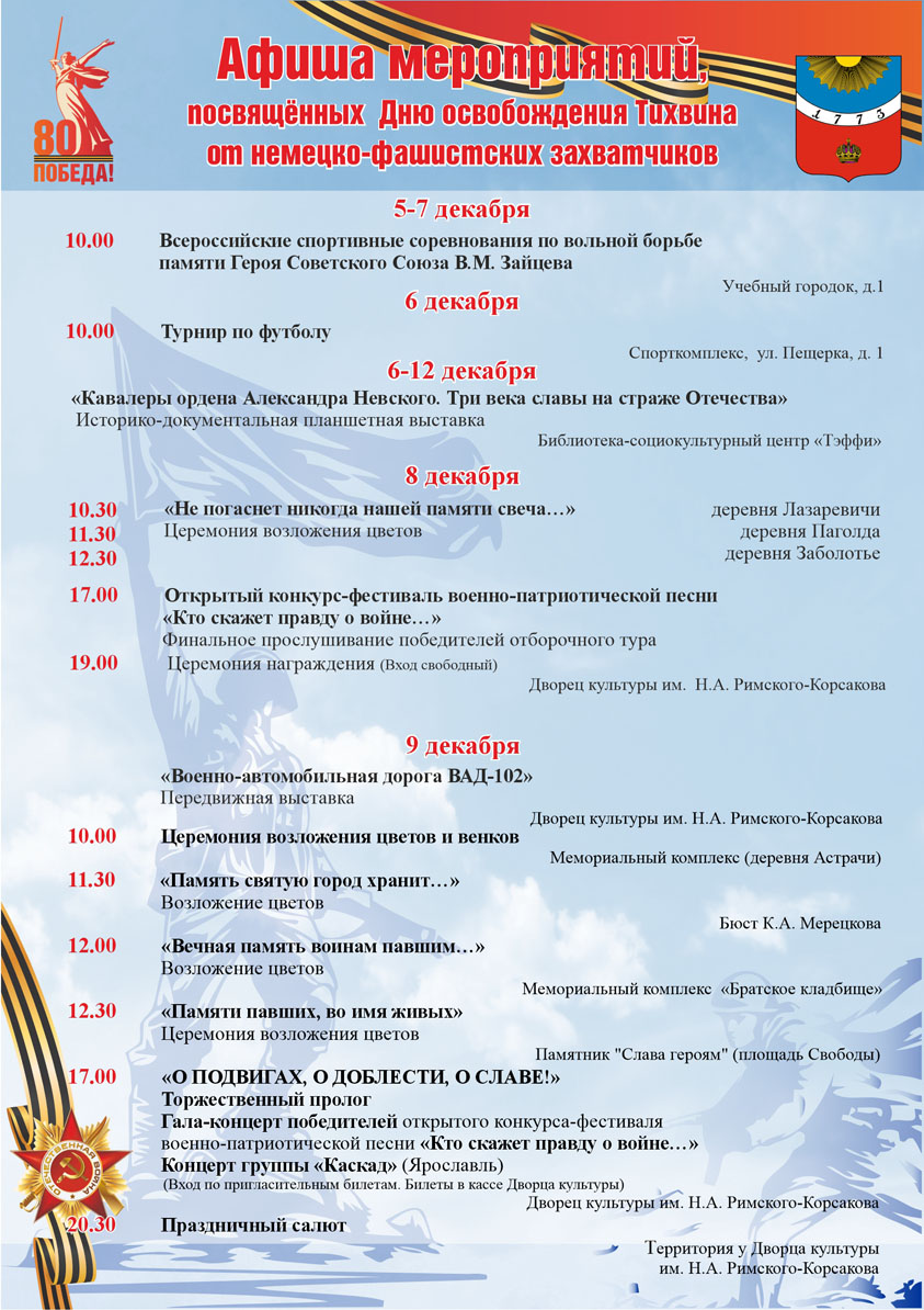 Афиша мероприятий, посвященных Дню освобождения Тихвина от немецко-фашистских захватчиков