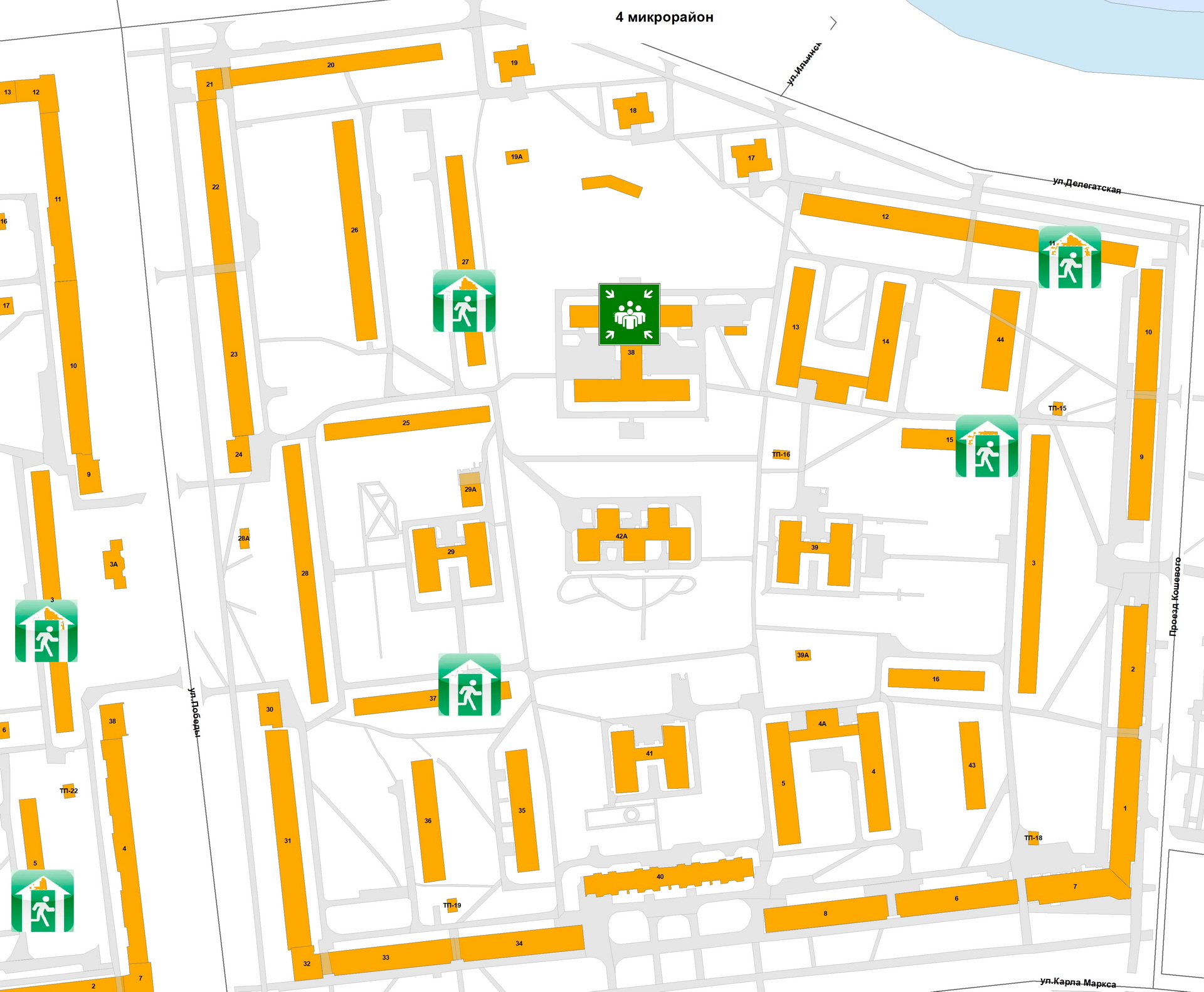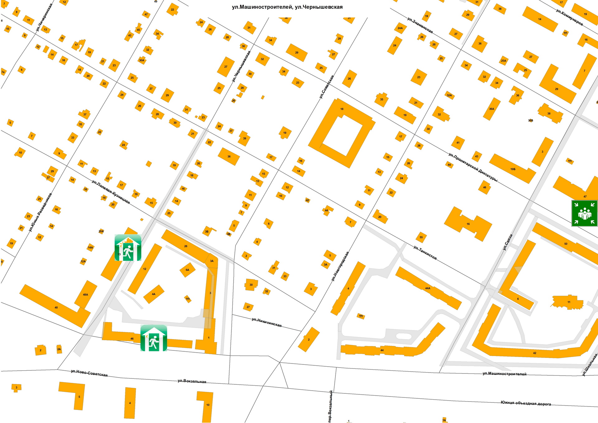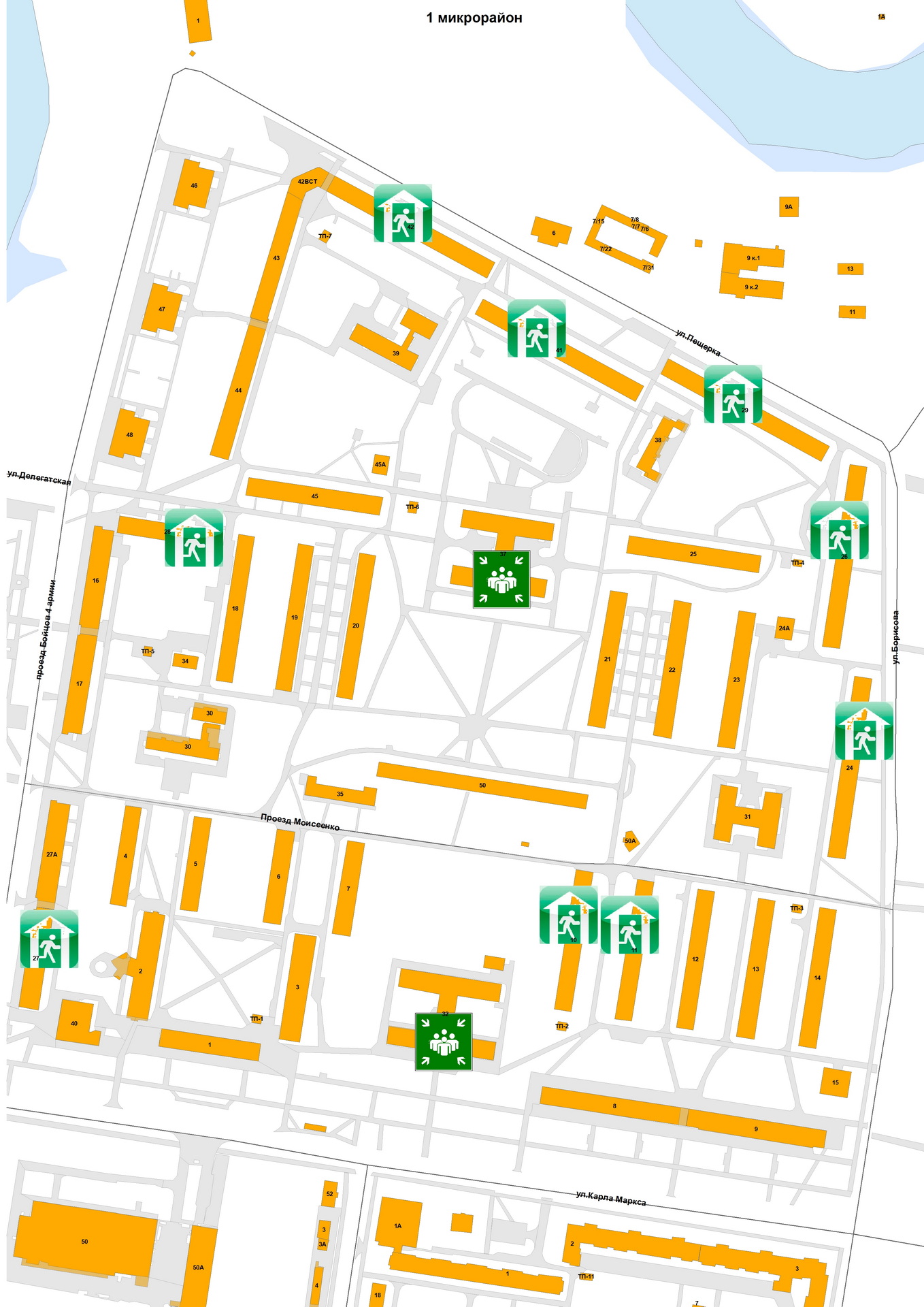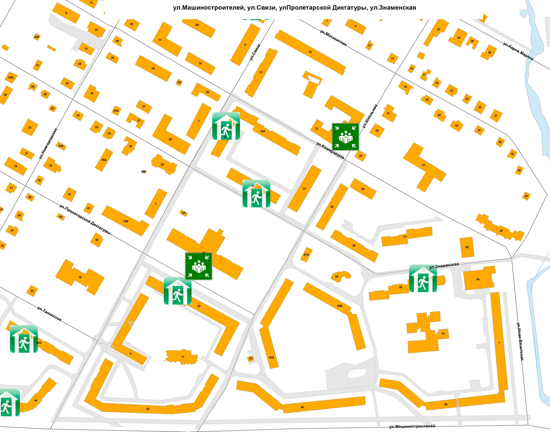 Месторасположение сборных эвакуационных пунктов, а также заглублённых помещений для укрытия населения на территории Тихвинского района.